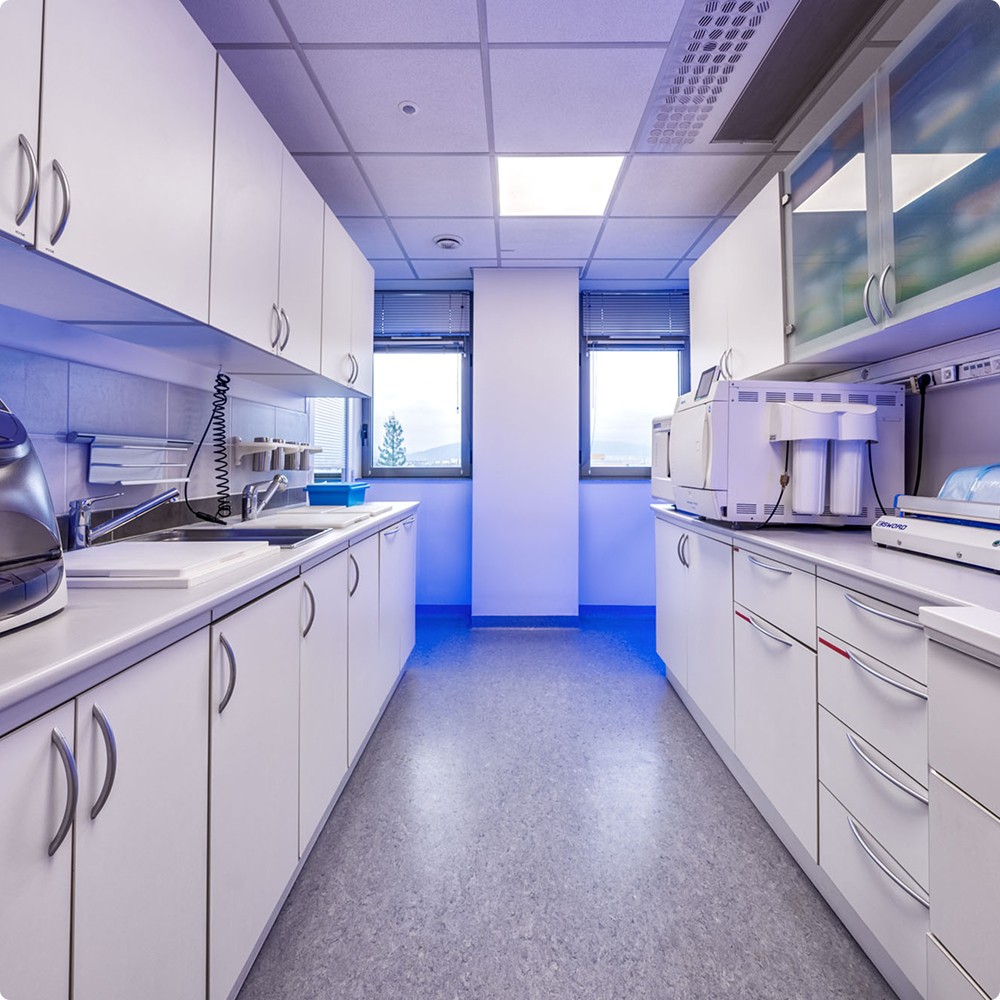 Un bureau est dédié aux explications administratives tandis que nos salles de consultation sont conçues pour garantir votre intimité par rapport aux autres patients avec un seul fauteuil par pièce.