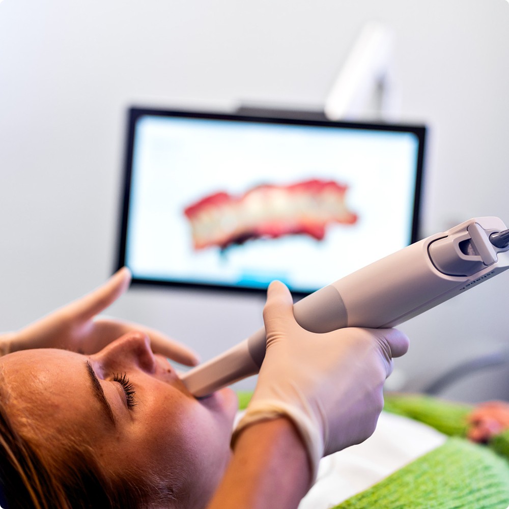 Fini la pâte dans la bouche ! L’enregistrement et la modélisation de vos arcades dentaires sont désormais réalisés par une petite caméra qui « photographie » vos dents en quelques secondes.